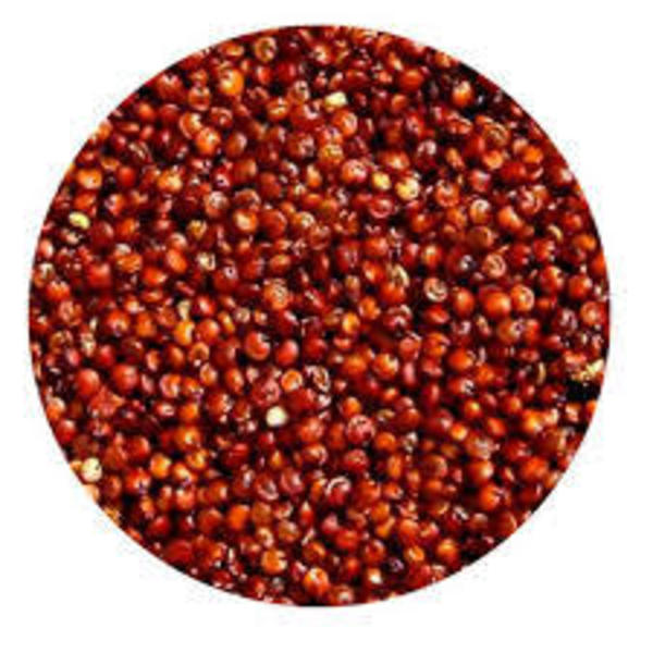 La quinoa roja, tiene un sabor delicado, una textura crujiente, es rica en minerales y vitaminas esenciales y no tiene gluten. Puedes disfrutarla en ensaladas, sopas o como una blanda y ligera guarnición. Contiene proteínas completas.