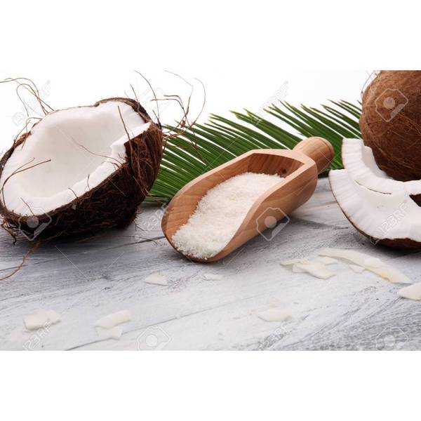 El coco rallado es un ingrediente que se obtiene al rallar la pulpa del coco seco. El color y sabor del coco rallado se atribuye a su alto contenido de azúcares y aceites. Rico en fibra y potasio así como en cobre, zinc, hierro, ácido fólico y fósforo. Vitamina E, es un alimento energético. alto de ácidos grasos saturados. con alto contenido calórico. Sin embargo, el jugo de coco casi no contiene grasas.